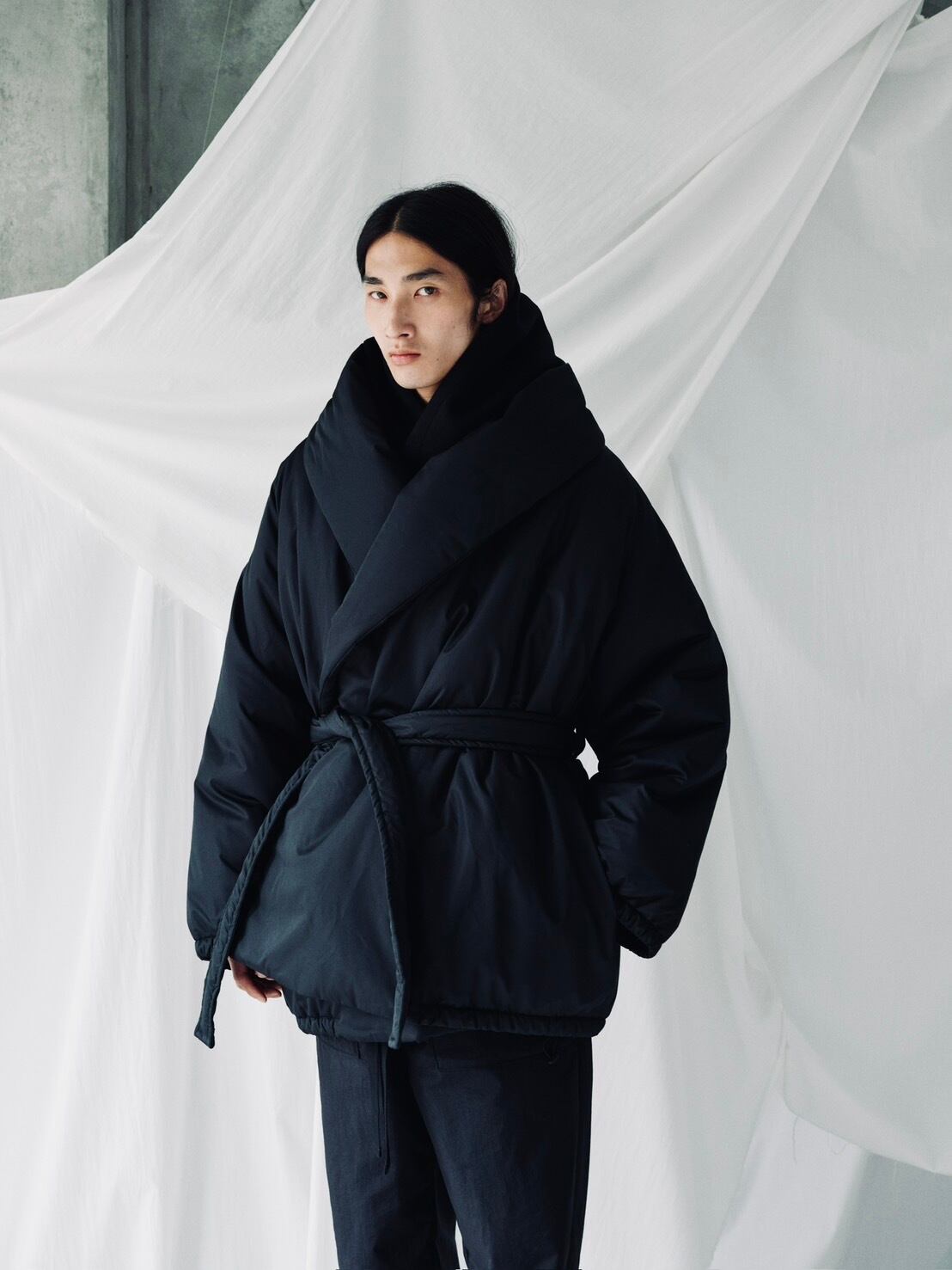 【ALAYA】Puffy Wrap Half Coat_BLACK