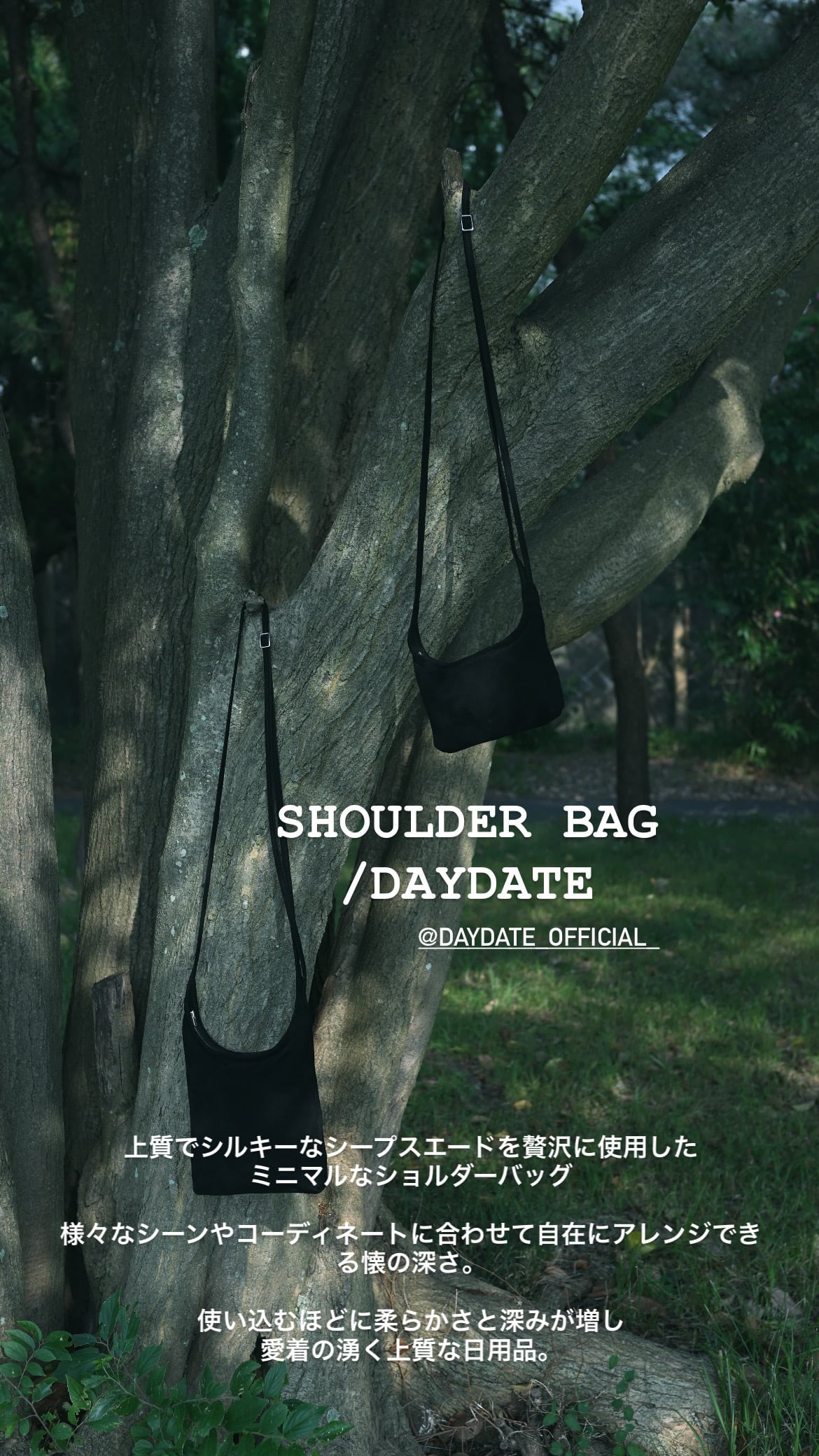 上質なシルキースエードを贅沢に使用した、ミニマルデザインのショルダーバッグ。